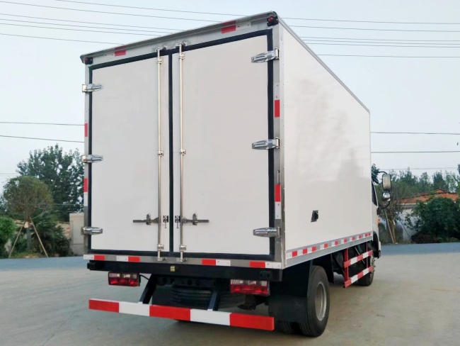我公司《晶龙工艺》技术,采用1200吨液压加热固化设备一体成型生产线制造,厢体保温技术达到国家A级标准。1、全密封树脂胶粘连聚氨酯发泡板高压加热固化而成,厢板厚度为8cm;2、厢板内外面料为2.5mm厚新款玻璃钢;3、粘连辅料为玻璃纤维丝布;4、板块结构聚氨酯发泡保温材料;5、全密封树脂胶粘连;6、预埋实木厢体加固;7、厢体框架为防锈处理槽钢支撑;8、铝合金包边/不锈钢包角;9、厢体内部加装LED照明灯;10、厢体加装LED示宽灯;11、3.5米厢体以上加装LED边灯;12、厢体后门框为不锈钢制造及不锈钢铰链(俗称:不锈钢合页);13、加厚不锈钢锁件;14、后门加装防撞胶块;15、采用三元乙丙橡胶密封条;16、3M反光胶板。