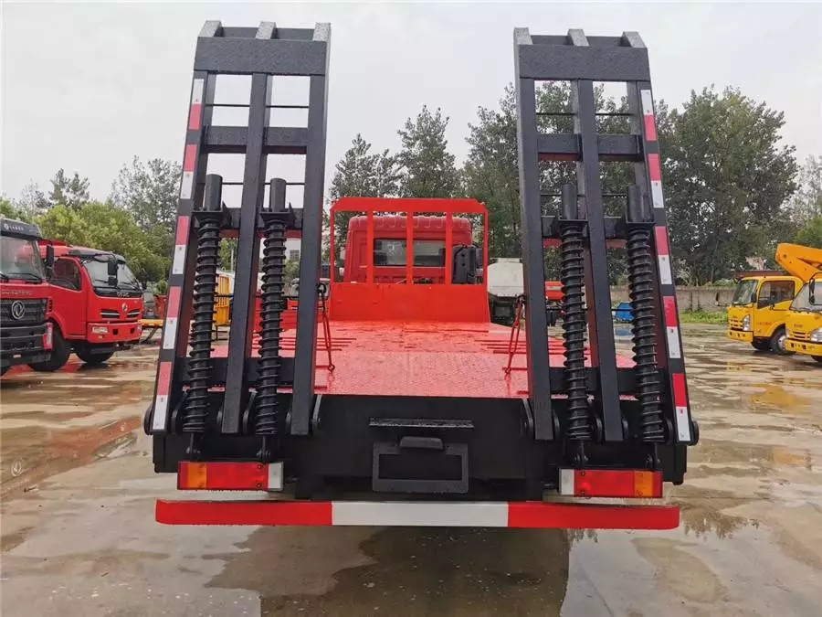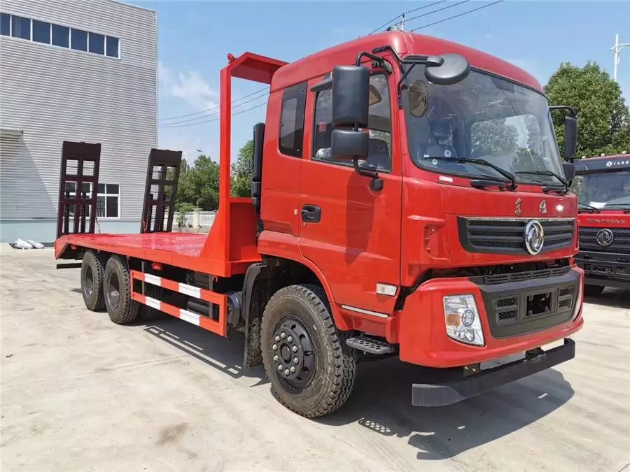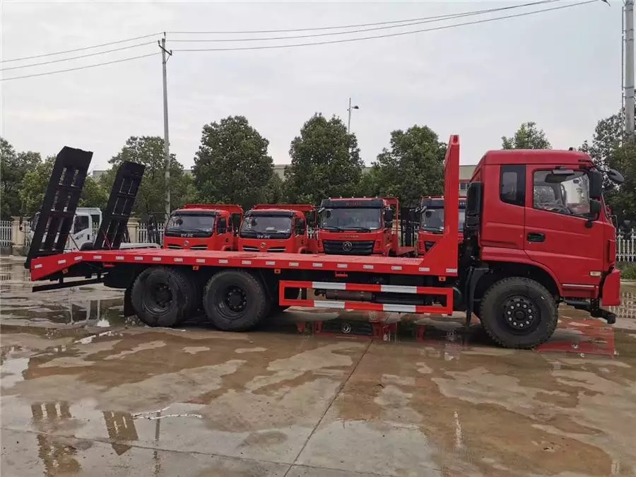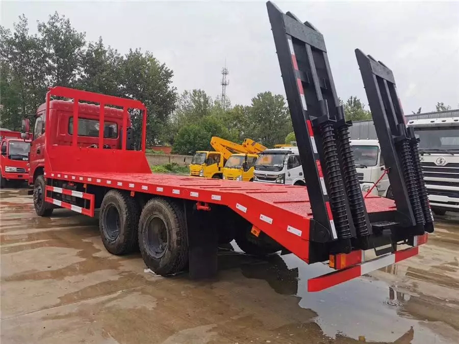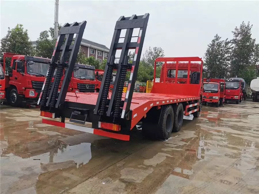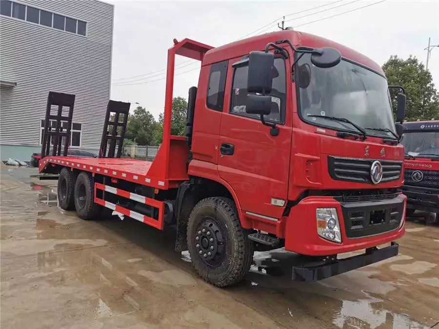 东风D913排半驾驶室,玉柴6缸240马力—玉柴270马力,法士特8挡—10挡变速箱,300mm双层大梁,10吨—13吨双后桥,10.00R20—11.00R20钢丝胎,带电动门窗,新ABS,方向助力,离合助力,断气刹,排气制动。该车适用于公路路面机械、摊铺机、铁铣机、压路机以及工程履带设备等各种公路、市政、建筑大型施工机械设备的转场运输。它具有灵活方便、自主上下(各履带式工程设备可自行上下平台,无需其他任何起吊设备及辅助工具)、升降自如(跳板采用内隙自调液压增力式装置,可自行升降)的特点。***采用串联式平衡悬挂,运输道路无论平整、凹凸,悬挂系统都能均衡受力,从而保证了车辆在运输过程中安全无损坏。安装防滑条,保证被运输车辆的安全性。各种不同宽度的工程履带设备均能上下。