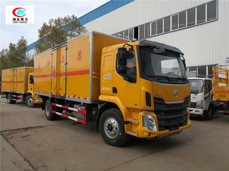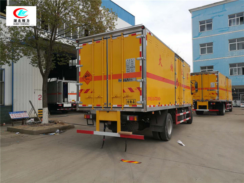 | 其他 | 厢体顶部封闭,不可开启.该车为EX/Ⅲ型车辆。用于运输:炸药,雷管,烟花,爆竹,项目号:1.1B, 1.1D, 1.1G, 1.2G, 1.3G ,1.4G; 选装不带侧门,侧门型式及位置;选装液压升降尾板,选装车厢冀开启结构,厢体颜色可变化,文字喷涂位置可变化。侧防护采用碳钢/Q235B,螺栓加焊接连接,后防护采用碳钢/Q235B,螺栓连接,截面高100mm,截面宽50mm,下边缘离地高540mm。随底盘选装驾驶室;仅选用前盘式制动器,前置排气管,子午线轮胎,限速装置的底盘,限速80km/h,该车安装具有卫星定位功能的行驶记录仪ABS型号/企业: ABS-E 4S/4M /威伯科汽车控制系统有限公司。 | ||