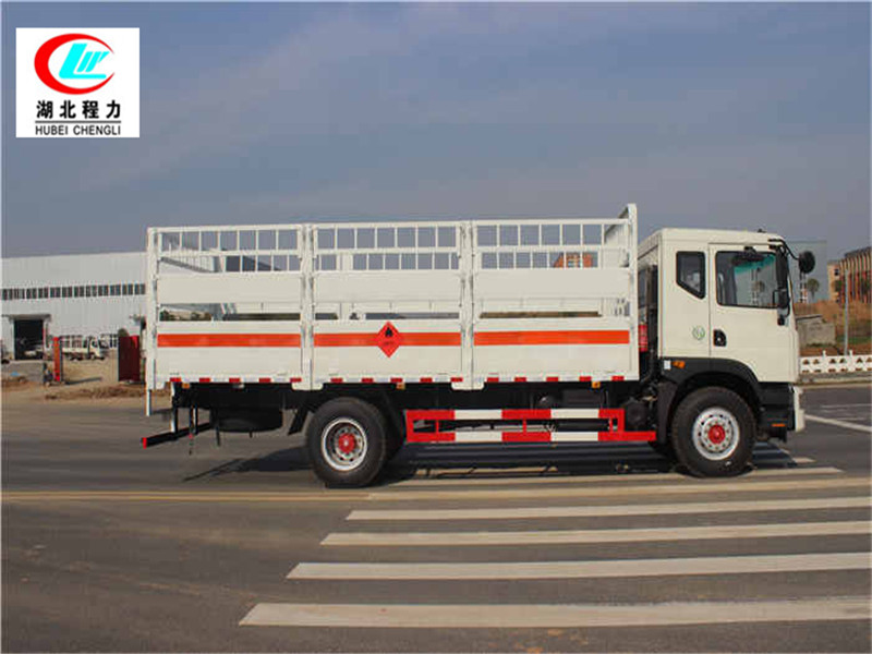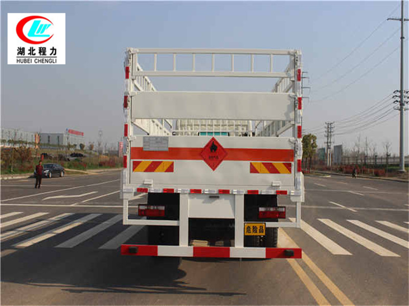 | 其他 | 该车适用于危险品运输。随底盘选装驾驶室.前面罩,前组合灯具.厢体选装无栅栏.运输具有独立罐(瓶)容器包装的易燃气体:液化石油气,压缩天然气,乙炔,乙烷,丁烷,丁烯,丙烯.甲烷.二甲醚,压缩氢.类项号2.1,运输具有独立容器包装的非易燃无毒气体:二氧化碳,压缩氧. 压缩空气(氮,氦,氩,氖),类项号2.2,该车运输的气瓶盛装介质2.1项易燃气体时,车辆左、右侧及后部粘贴“易燃气体”标示牌,该车运输的气瓶中盛装介质2.2项非易燃无毒气体时,车辆左、右侧及后部粘贴“不燃气体”标示牌.厢体颜色可变化.侧面及后下部 | ||