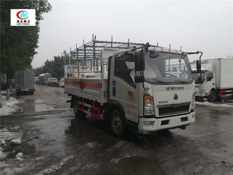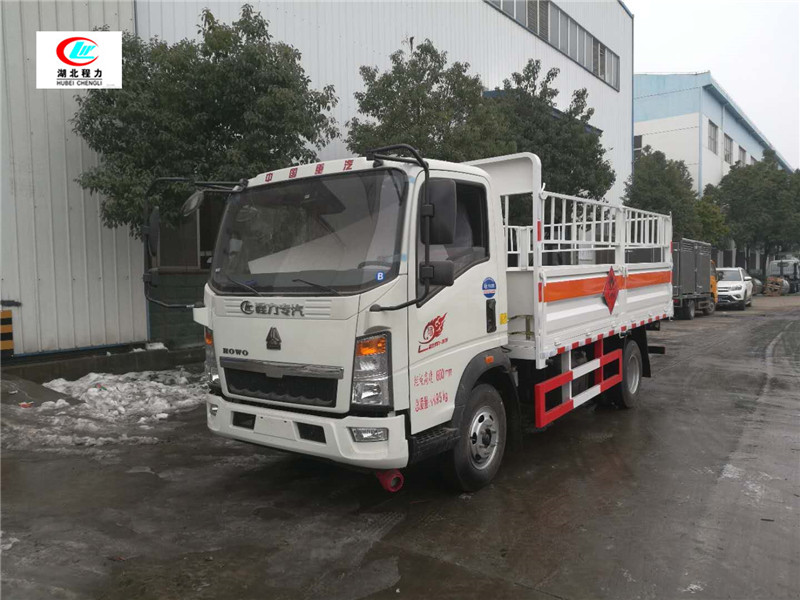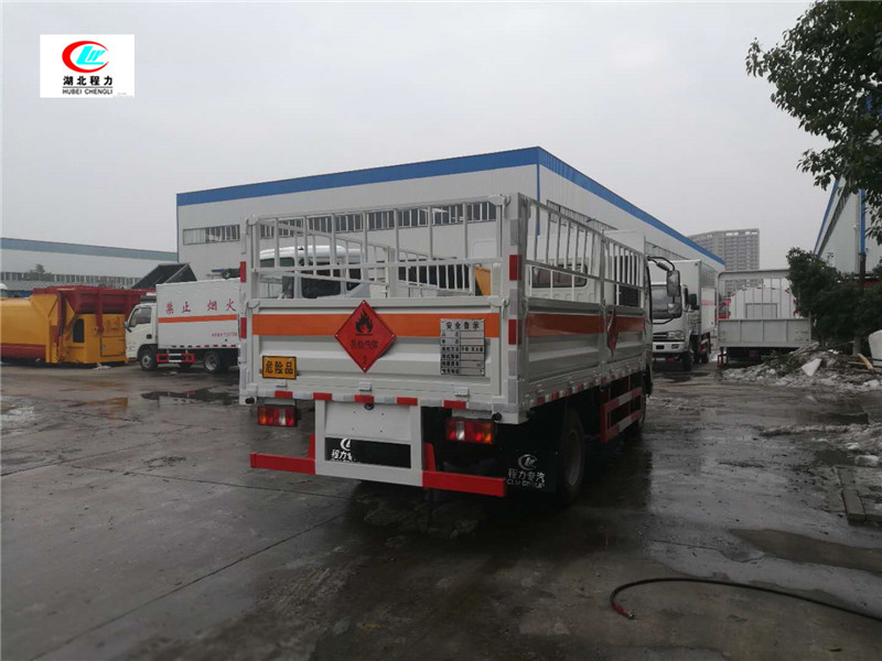 | 其他 | 该车适用于运输危险品,主要用于运输具有独立容器(瓶)包装的液化石油气,丁烷,乙炔,乙烷,丙烷,丁烯,打火机或打火机加油器,二氧化碳,压缩氧(氮,空气,氦,氩,氖),类项号:2.1,2.2。该车运输的介质为2.1项易燃气体时,车辆采用”易燃气体”标识牌,运输的介质为2.2项非易燃无毒气体时,车辆采用”不燃气体”标识牌。货栏颜色可变化,文字喷涂位置可变化,选装无栅栏。采用发动机型号YN27CRE1,YN38CRE1,CY4BK151,JE493ZLQ5,D25TCIE1,D25TCIE3对应油耗值分别为油耗 (L/100km):11.2,11.6,12.0,11.4,12.0,12.0。整车长/轴距/后悬对应关系为(mm):5995/3280/1555,5995/3160/1675.防护材料:Q235A碳钢,连接方式:左右侧面及后下部防护均采用焊接连接,后部防护断面尺寸(mm):100×50,后部防护离地高度(mm):520,该车安装带有卫星定位功能的行驶记录仪,仅采用前盘制动器和安装ABS以及前置消声器的底盘,采用子午线轮胎,安装限速装置,限速79km/h,专用装置为固定用卡槽。ABS系统型号为XH-KQ4S4M-E01,生产企业为广州市西合汽车电子装备有限公司。 | ||