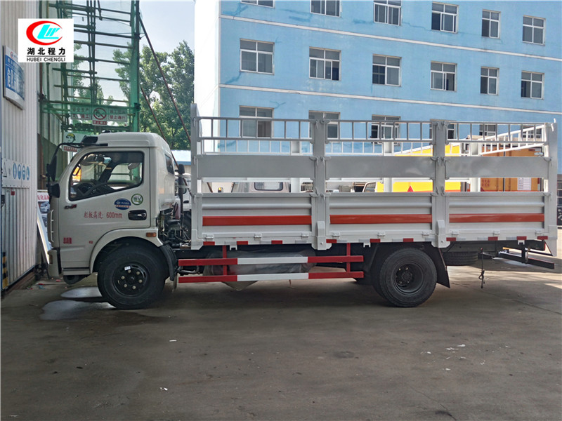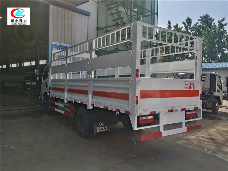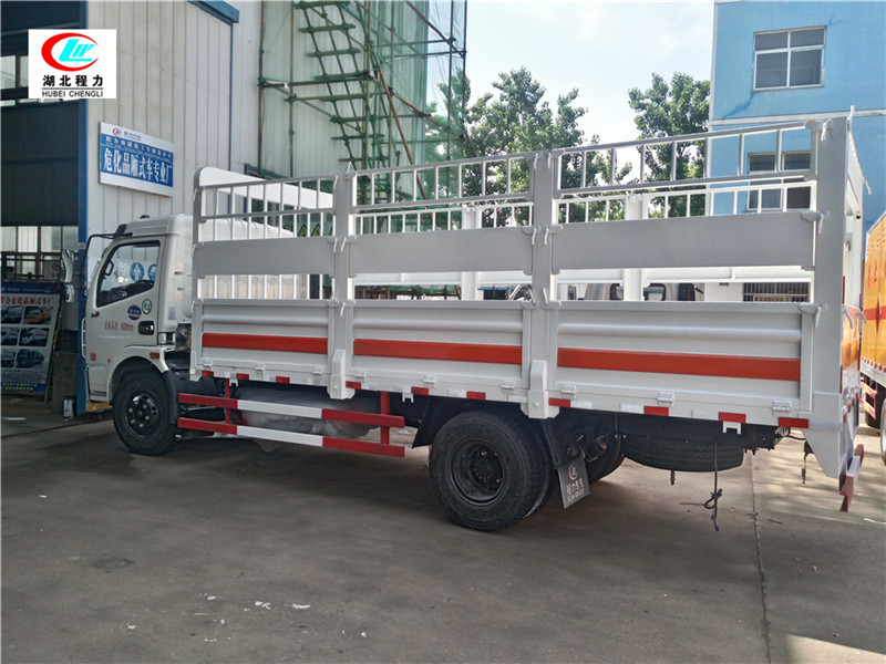 | 其他 | 该车适用于运输危险品。用于运输具有独立容器(瓶)包装的易燃气体(类项号:2.1):液化石油气,压缩甲烷或甲烷含量高的压缩天然气,乙炔,乙烷,丁烷,丙烯,丁烯,二甲醚,压缩氧;用于运输具有独立容器(瓶)包装的非易燃无毒气体(类项号:2.2):二氧化碳,压缩氧(氮,空气,氦,氩,氖)。防护材料:Q235A碳钢,连接方式:左右侧面及后部防护均采用焊接连接,后部防护断面尺(mm):100×50, 后部防护离地高度(mm):500。仅采用底盘子午线轮胎和带ABS的底盘,该车前轮安装盘式制动器,前置排气管,装配限速装置,限速80km/h。安装带有卫星定位功能的行驶记录仪。ABS系统生产厂家及型号:襄阳东风隆诚机械有限责任公司,ABS/ASR-24V-4S/4M。随底盘选装前面罩,前保险杠,前组合灯具。上装可选装无栅栏。后部液压尾板收起状态的水平长度是250mm。危险货物运输车辆的车辆类型(FL型车辆)。 | ||