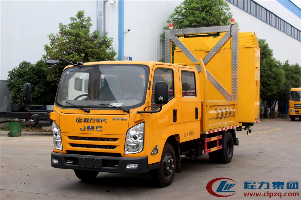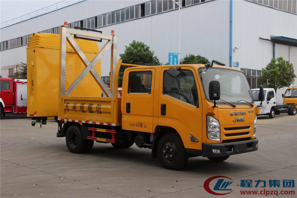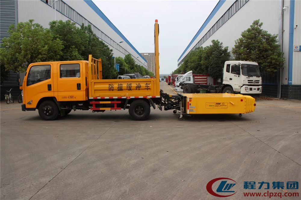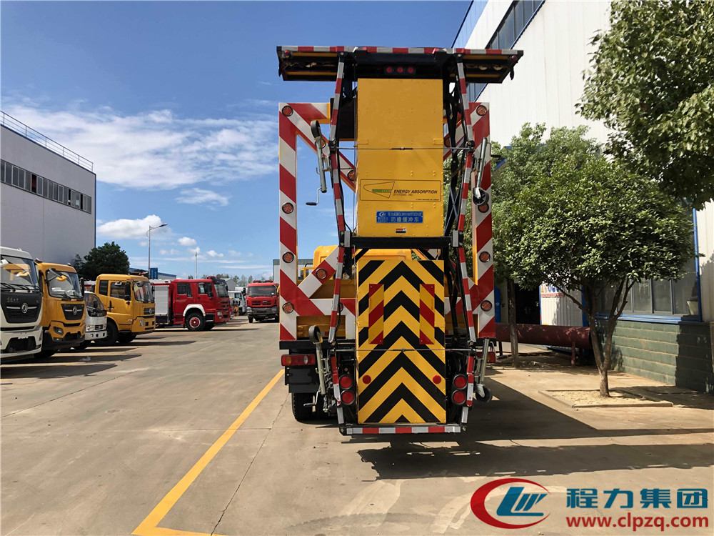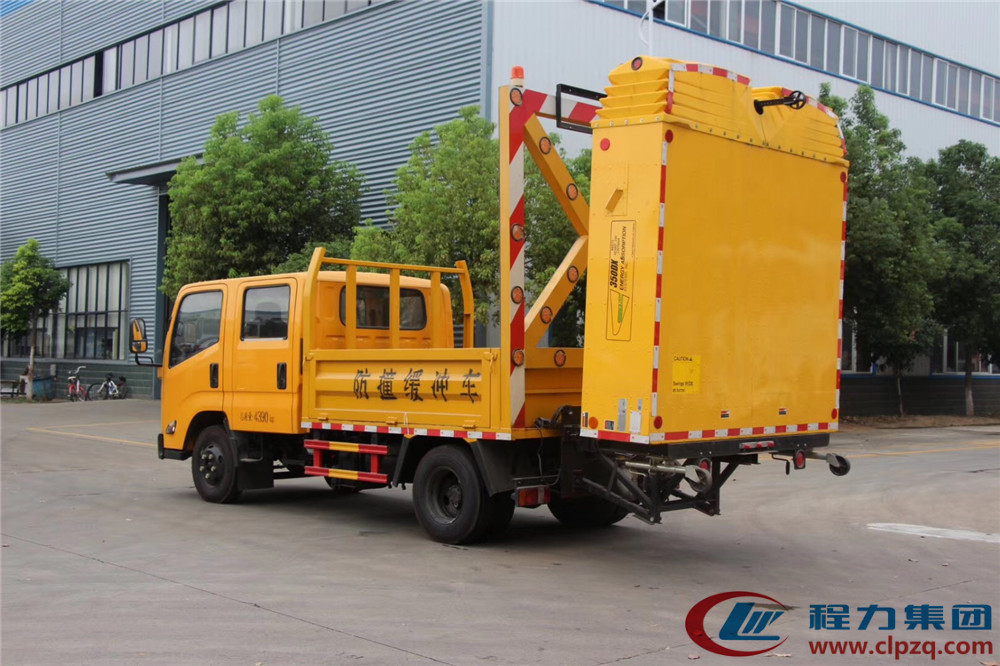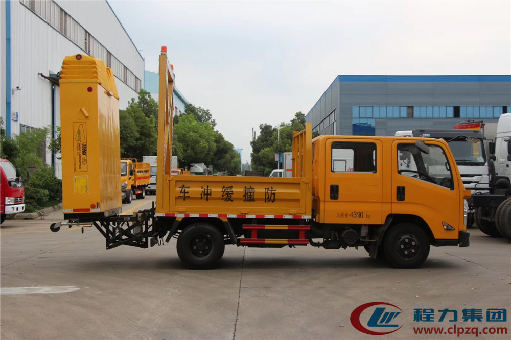 | 其他 | 该车专用装置为导向架和防撞缓冲垫等组成,可在临时性车道封闭的路段给养路工人及设备提供全面的被动安装防护:通过防撞包的变形均匀逐渐的缓消碰撞的动能,对施工人员及设备进行有效的保护,同时最大限度地保护撞击车辆内人员的安全。防护材料:Q235碳钢,连接方式:左右侧面防护采用螺栓连接,后部防护与专用装置相干涉可豁免,后部离地高310mm。ABS型号:3631010-C2000,4460046440;生产厂家:东科克诺尔商用车制动系统(十堰)有限公司,威伯科汽车控制系统(中国)有限公司。随底盘选装驾驶室。整车长/轴距/前悬/后悬(mm)对应关系:9100/4700/1430/2970。侧面选装新样式。 | ||
