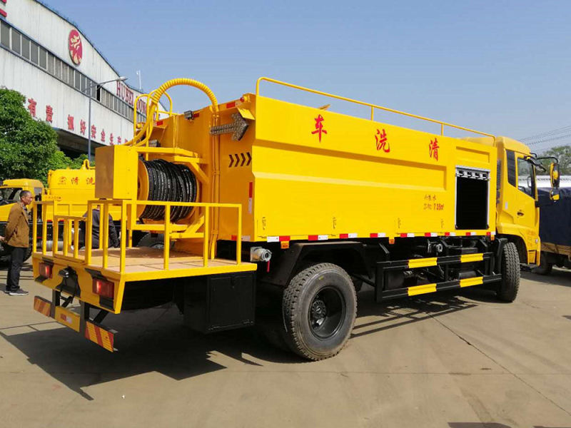 整车说明:方形罐体容积10-12立方米,配进口品孚或天津通洁高压泵,流量270升,压力24MPa,罐前配检修卷帘门,罐尾配可折叠自动液压卷盘,标配60米高压疏通管,10个不同功能喷头,工具箱1个,洗手装置等。