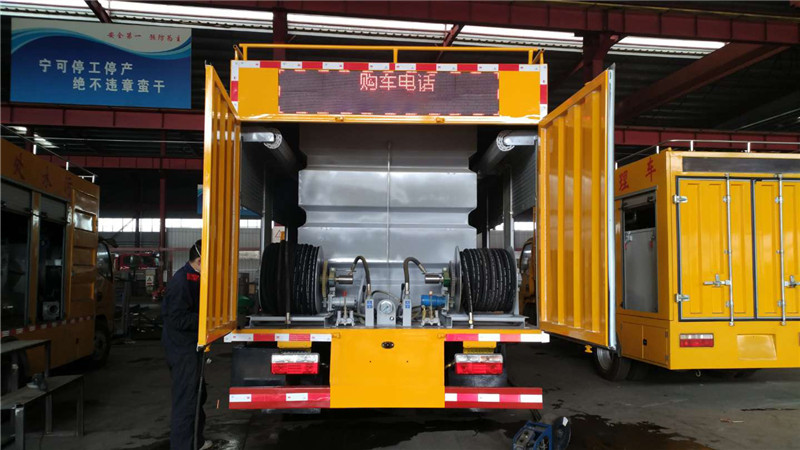 整车说明:方形水罐9立方,国标4毫米厚Q235钢板自动焊接制作,加装清水过滤装置,液位计,标配德国品孚170/24高压泵,双液压自动卷盘80米+60米19mm三层钢丝高压管,随车配10个不同功能高压喷头。 随车附件:底盘合格证、整车合格证、机动车专用上户发票、保修手册、全国服务站目录、随车工具等。 此车带免征公告,上牌时不需要交购置税。