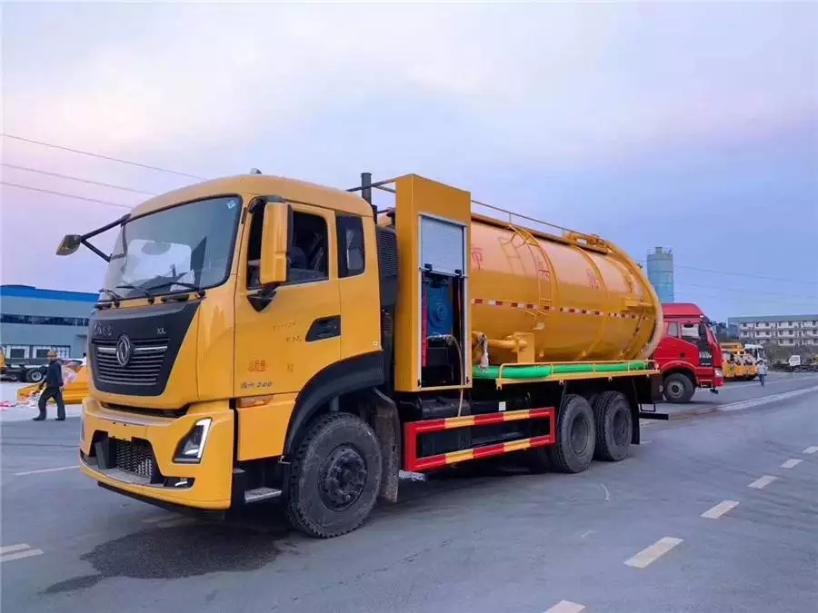 国六东风天龙290马力后双桥清洗吸污车上装配置:罐体容积:20立方,罐体内底部加装不锈钢底板1.2米宽,顶部两侧做碳钢防滑平台护栏,罐体及封头厚度:8mm,清水罐用污灌口做,污水罐用水泥罐口,清水罐消防栓进水口在副驾驶一侧《两头用接口,中间用白色软管连接》,水污互通,视粪窗左右各一个,清水罐、污水罐内各做爬梯一个,副梁选用橡胶垫,中置顶,安装限位阀。