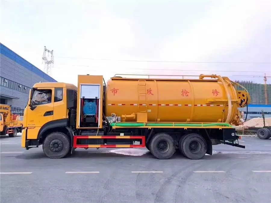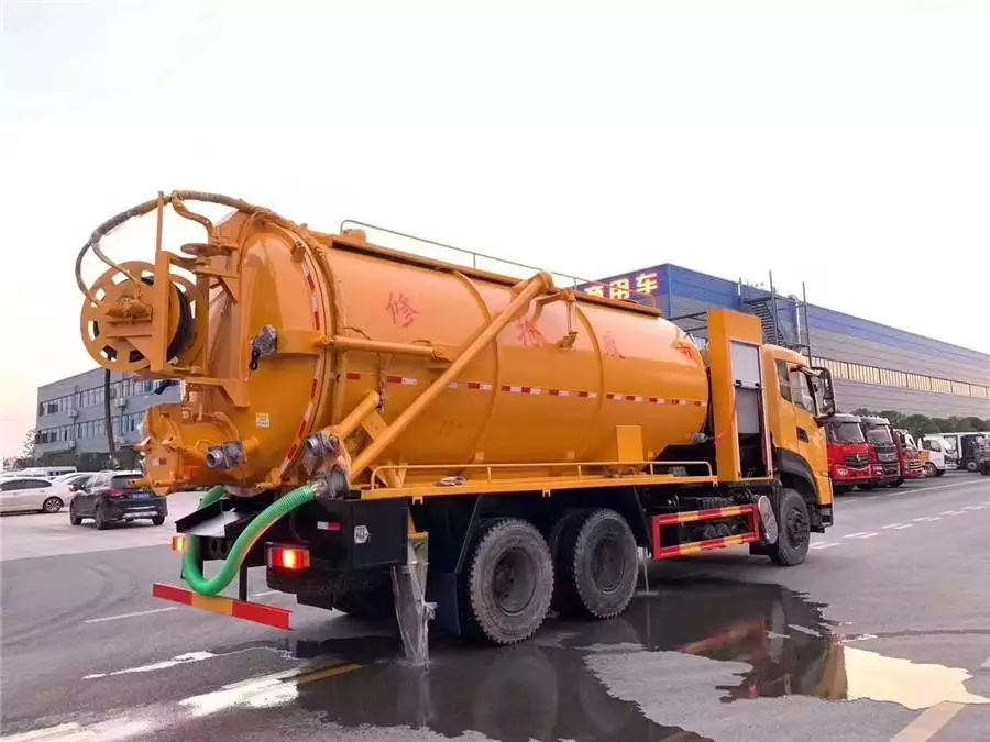国六东风天龙后双桥清洗吸污车具有疏通、吸污、清污等多种功能,一车顶3车