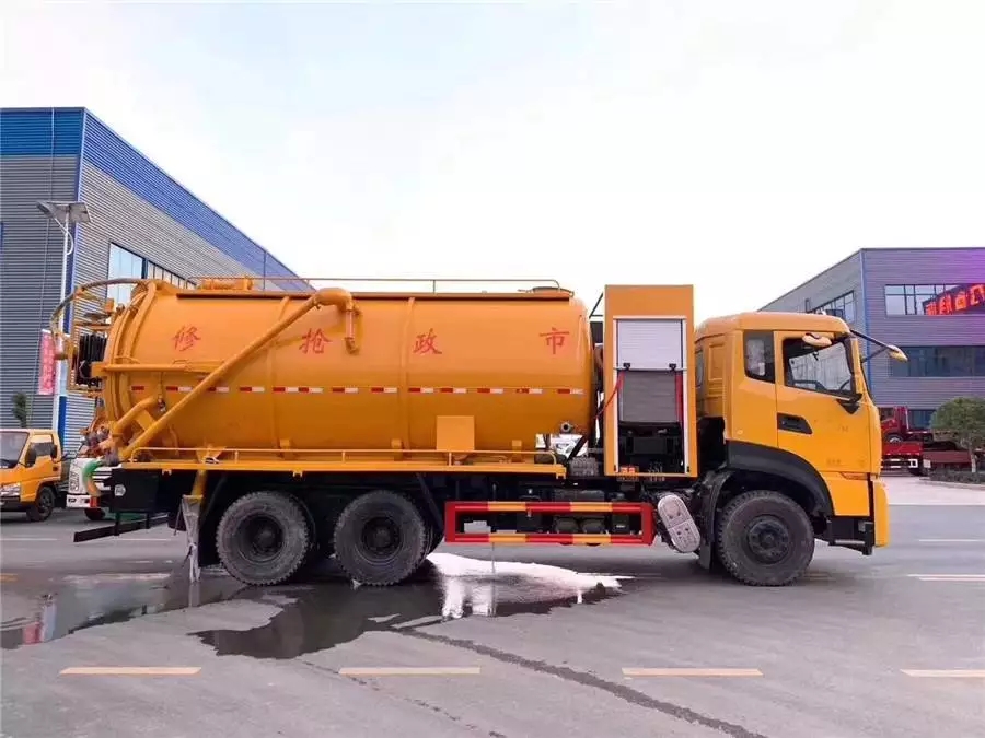 国六天龙后双桥20吨清洗吸污车,后封头可旋转齿轮自动液压绞盘,高压管60米22通径,耐压22mpa,后封头下部开600mm内通径液压排污口1个,后盖左下6寸排污阀1个,后盖右下4寸排气阀1个,4寸吸污阀1个,副发进气管用125mm,不锈钢水箱做0.8方,1个工具箱《尽量做大》,防溢流装置,后尾部装双箭头灯,清水罐顶部装排气阀1个,清水罐底部装4寸排水阀1个,出水管在清水罐里面装75mm阀门,出水管用89mm管。