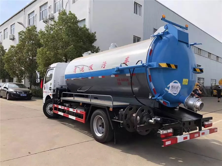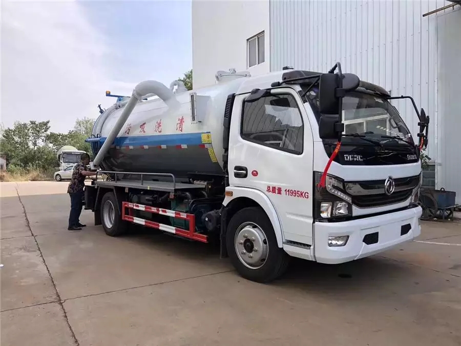 国六东风8方一体罐清洗吸污车,罐体尺寸(直段长×直径)(mm):4100×1600,罐体容积9方,罐体厚度6mm,自卸举升顶,大盖开启,大盖开150排污球阀一个,视粪窗,清洗部分:采用品孚215高压泵,边挂60小卷盘,带一个工具箱,吸污部分:采用SK-12型水循环泵,带100侧抽,防溢阀加高,油漆蓝银灰。