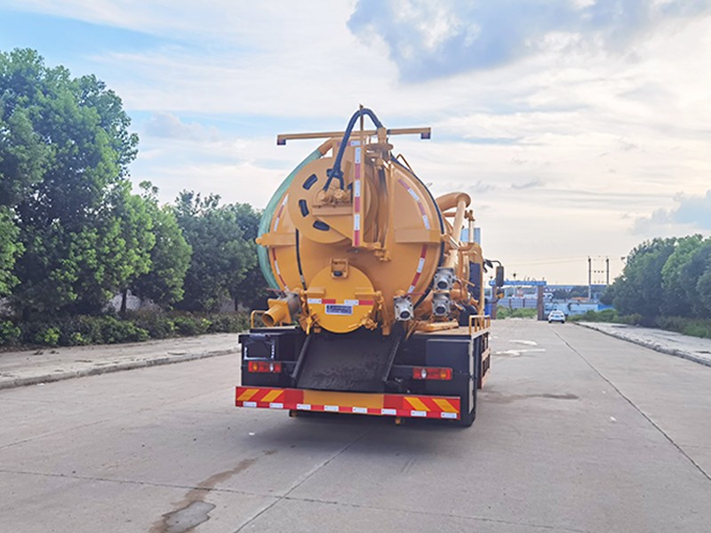 罐体:容积15立方,可自由分割清水与污水箱容积,水污互通;罐体厚度6mm吸污部分底部铺不锈钢钢板。吸污罐顶为水泥灌口,罐体顶部带平台。