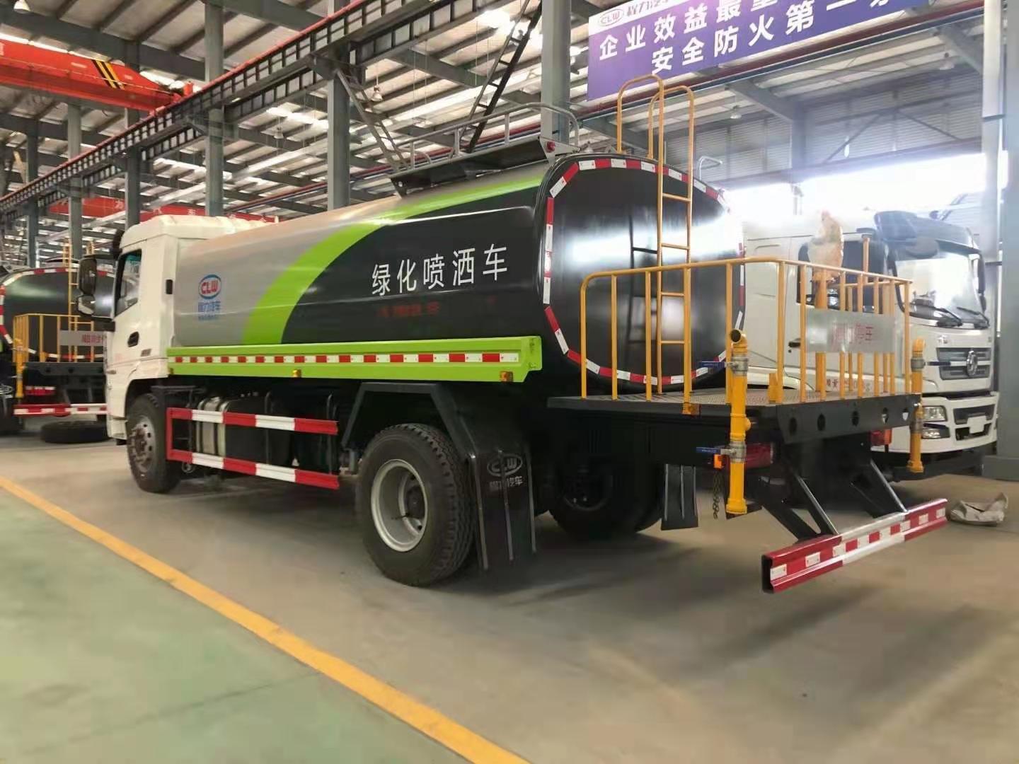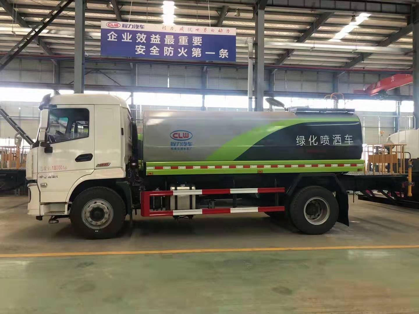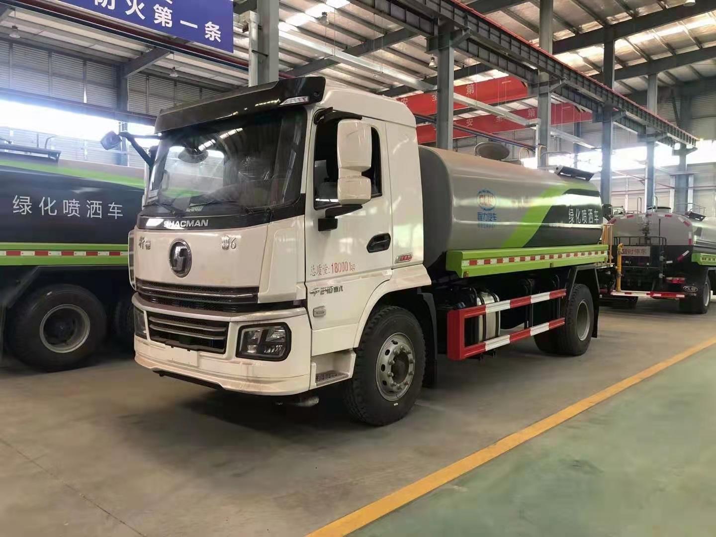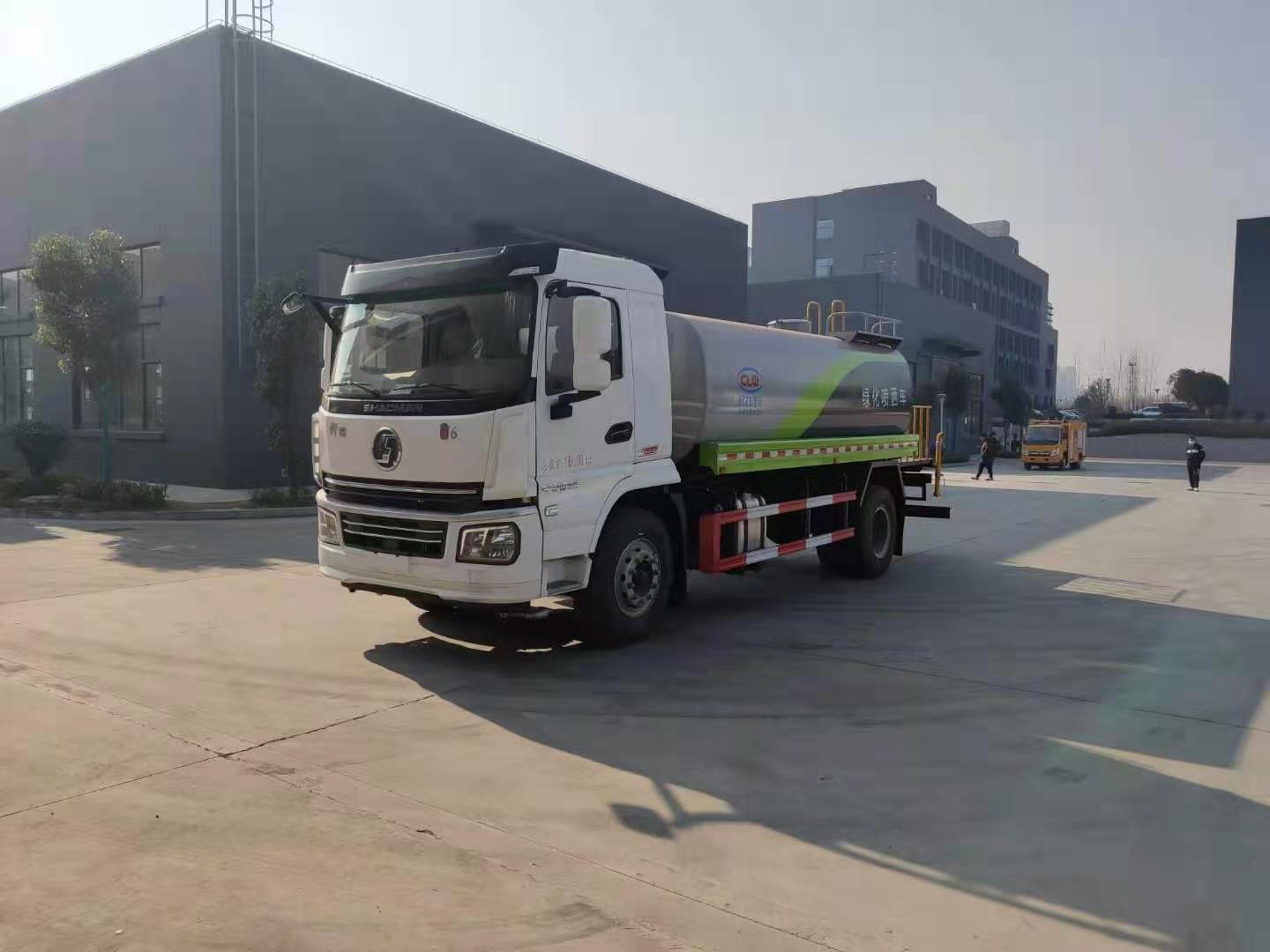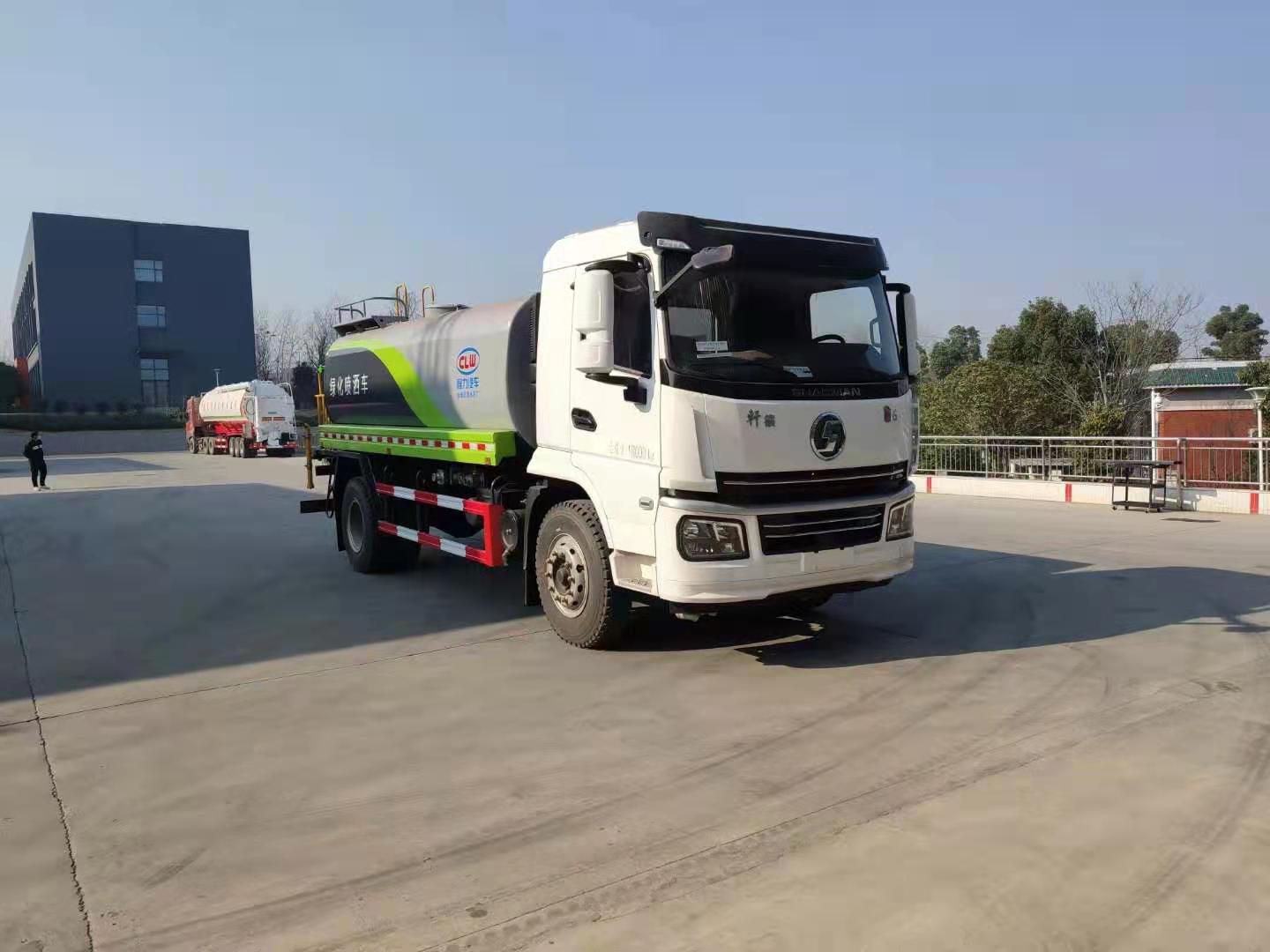 该车采用陕汽轩德底盘,8档变速箱,电动玻璃,原装空调,ABS,气刹,洒水车标配前冲(喷)后洒,洒水宽度14~16米,带侧喷,罐体后带工作平台,平台上安装绿化洒水炮,洒水炮可全方位旋转,射程≥28米,可连续调成直冲状、大雨、小雨、毛毛雨,带安全护栏,配备程力威专用洒水泵,泵可自吸自排,安装过滤网,带消防接口,可通过消防栓进水,带自流阀,具有自吸自排功能,垂直吸≥6米;随车选装20米绿化卷盘,可喷洒农药,罐体金属漆。选装消防泵,射程50米。 洒水车同时具有运水功能,若运饮用水,罐体内需做防腐油漆,洒水车泵可起到吸水和加压排功能,也可不通过泵排水。