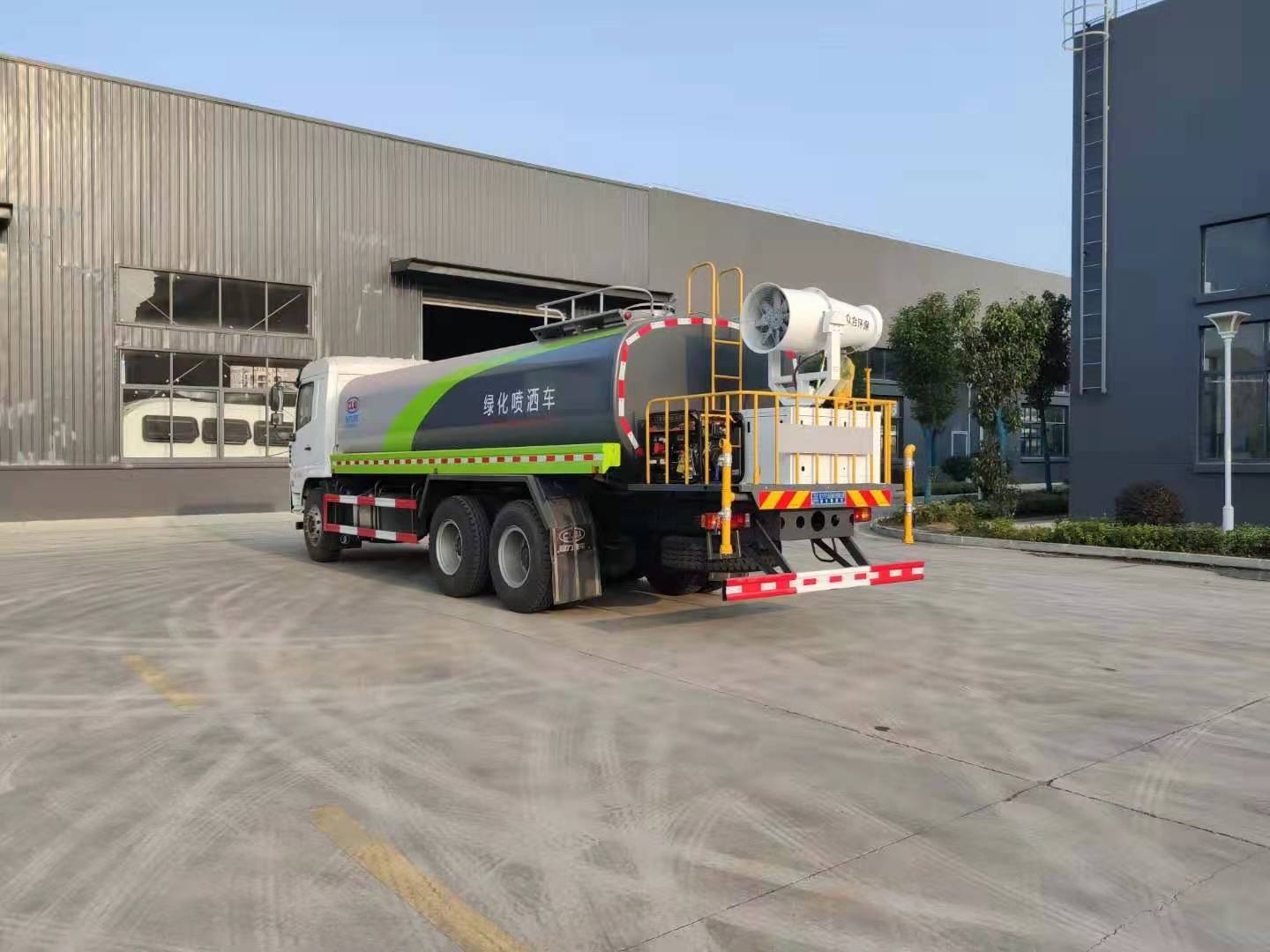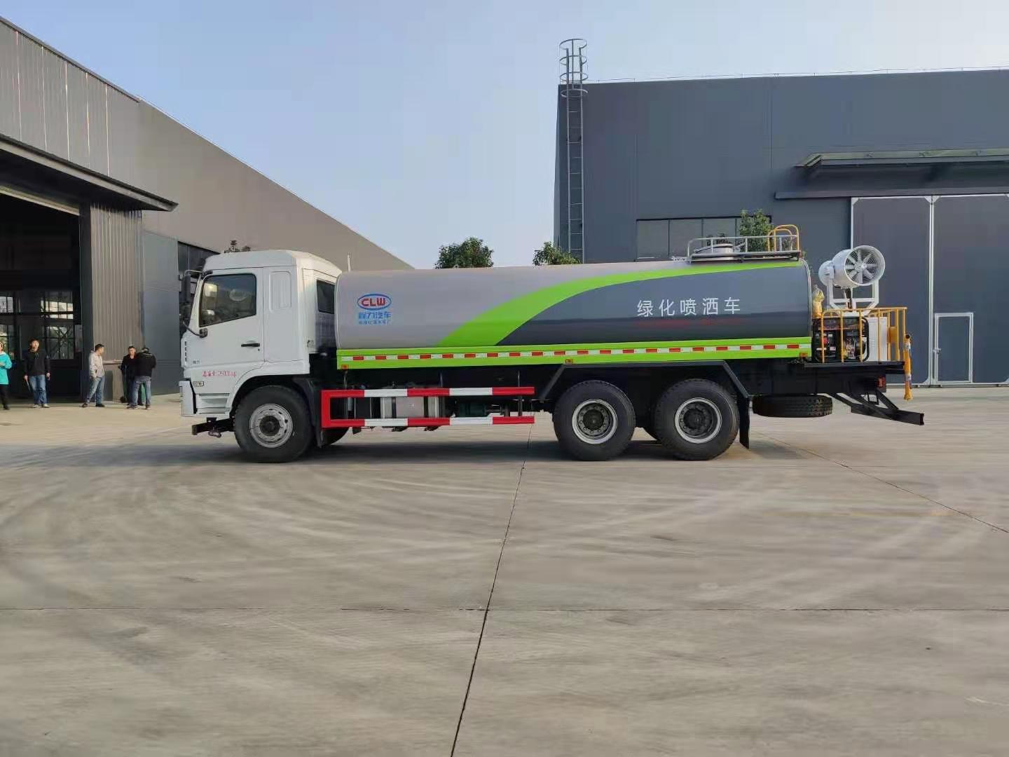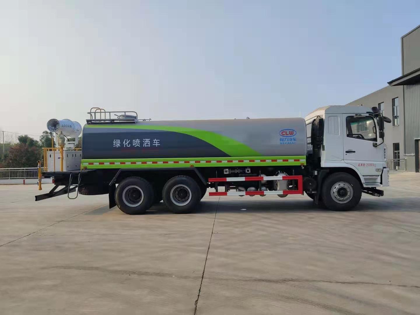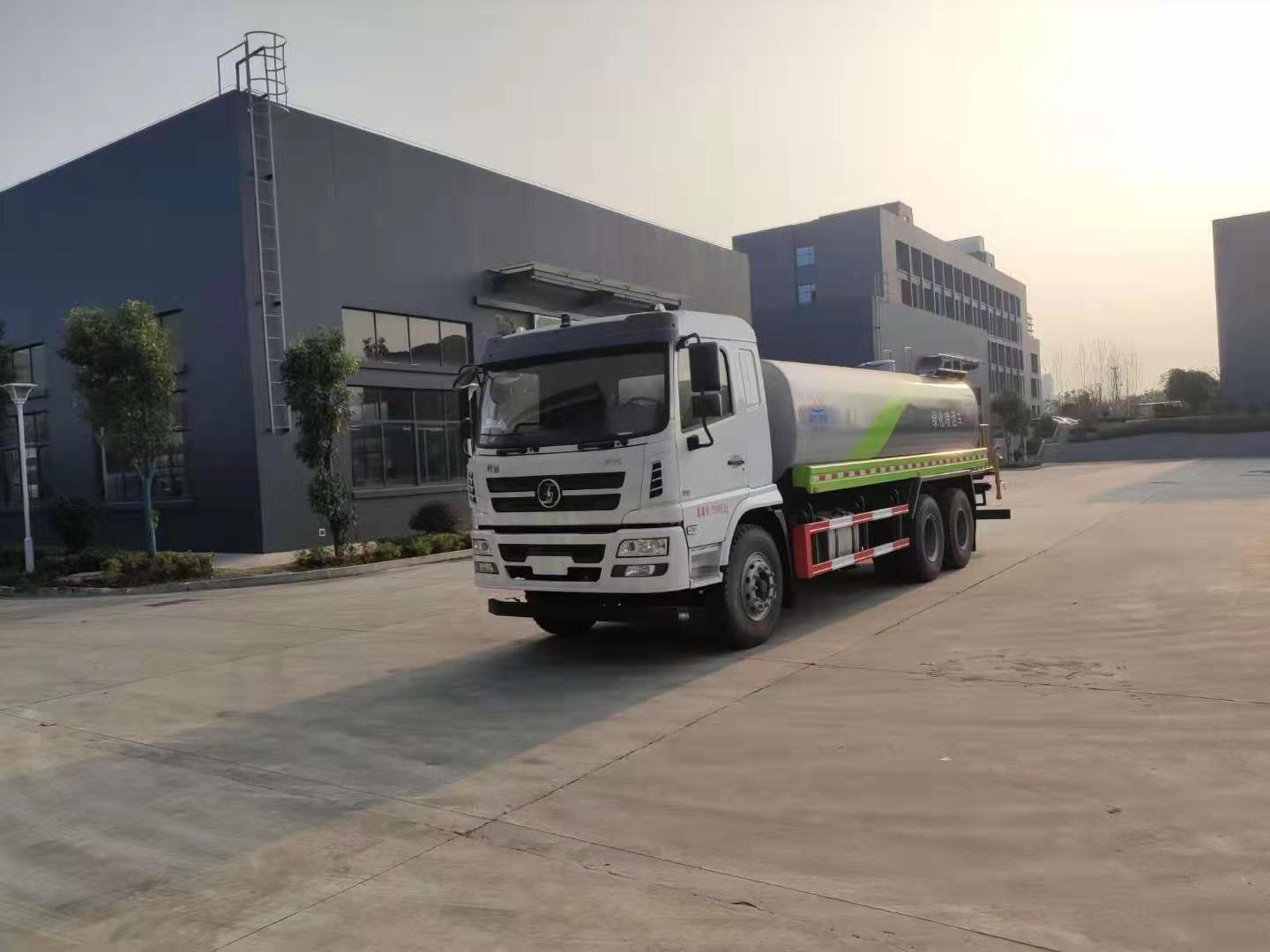 该车采用陕汽轩德后双桥高端底盘,豪华驾驶室,气囊座椅,9档变速箱,中控锁,电动玻璃,液晶屏,电加热后视镜,多功能方向盘,方向助力,洒水车标配前冲(喷)后洒,洒水宽度18~20米,带侧喷,罐体后带工作平台,平台上安装绿化洒水炮,洒水炮可全方位旋转,射程≥35米,可连续调成直冲状、大雨、小雨、毛毛雨,带安全护栏,配备程力威专用洒水泵,泵可自吸自排,安装过滤网,带消防接口,可通过消防栓进水,带自流阀,具有自吸自排功能,垂直吸≥6米;随车选装20米绿化卷盘,可喷洒农药,罐体金属漆。选装消防泵,射程50米。 洒水车同时具有运水功能,若运饮用水,罐体内需做防腐油漆,洒水车泵可起到吸水和加压排功能,也可不通过泵排水。