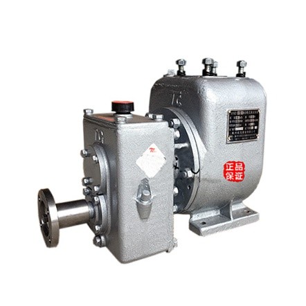 洒水泵采用外混式自吸结构,洒水泵内须存有适量的液体,洒水泵启动后叶轮旋转其进口处产生负压。吸入管路中气体与洒水泵内液体混合通过压出室进入气液分离室。由于气体和液体比重不同气体从液体中分离出来,经出口管路排出,液体在分离室中下没,经回流孔回到叶轮外缘,再次进行气液混合和分离,如此循环直至洒水泵体及吸入管内气体排尽而充满液体而完成自吸过程,洒水泵投入正常输液工作。