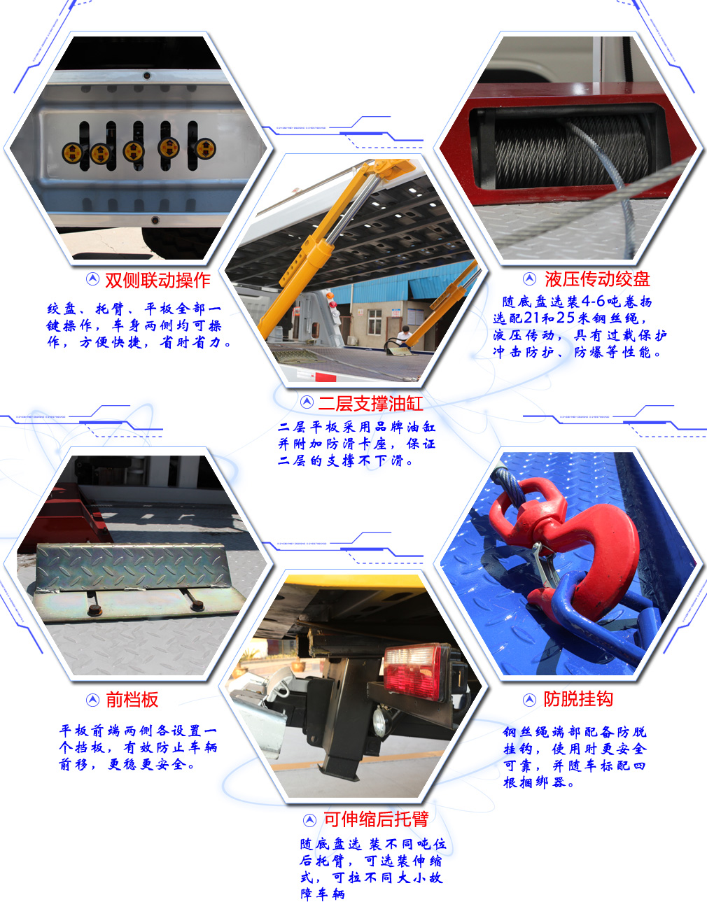 | 其他 | 随底盘选装驾驶室.托举质量:2300kg;装备SQ6.3SA2起重机,自重1900Kg,起吊质量6300Kg;选装SQ5SA2起重机, 自重1650Kg,起吊质量5000Kg;整车长/轴距对应关系为(mm):9140/4700;9440/5000.随底盘选装驾驶室.防护材料:Q235A碳钢,连接方式:左右侧面防护装置与大梁焊接连接;后部专用装置与后防护干涉,故后防护豁免.ABS型号:3631010-C2000,生产厂家:东科克诺尔商用车制动系统(十堰)有限公司.选装不同的外形图片. | ||