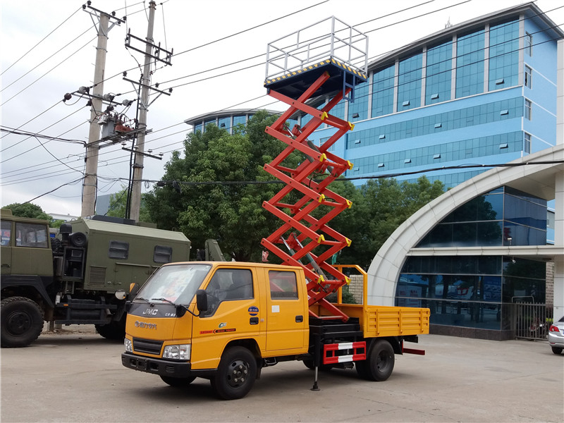 专用配置:作业高度6米、8米、10米、12米,带两个液压支腿,吊蓝额定载荷小于或等于500KG,工作压力14MPA,带油缸锁定功能。