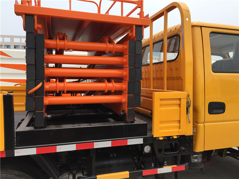 专用配置:该车作业高度6米、8米、10米、12米,带一个液压升降平台,带两个液压支腿,吊蓝额定载荷小于或等于500KG,工作压力14MPA。