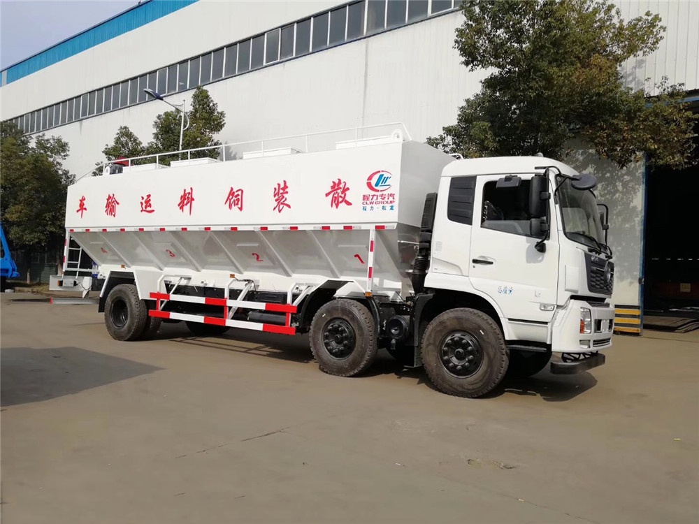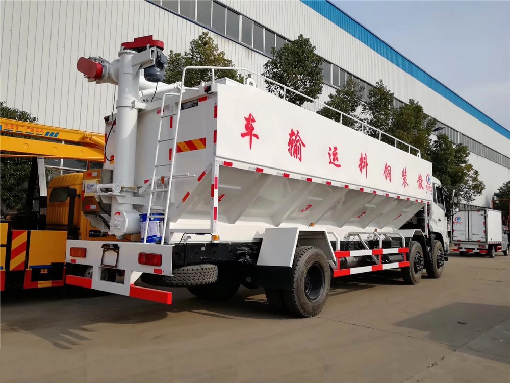| 其他 | 罐体外形尺寸(mm):8100×2480×2150(7000×2480×2150);罐体有效容积:29.5立方米;介质:膨化及颗粒饲料,粉料;密度:500kg/立方米;运输介质:膨化及颗粒饲料、粉料;外形长/轴距/后悬对应关系为(mm): 10980/1700+5100/2750,10980/1800+5000/2750,9990/1700+4200/2660, 9990/1800+4100/2660。防护材料:Q235A碳钢,后防护采用焊接连接。后防护截面高度尺寸:50×100(mm),下边缘离地高度445mm。本车仅选用的发动机型号为ISD210 50,ISD245 50,ISD270 50,ISB210 50,分别与发动机对应的油耗值为:33.7,33.6,33.6,33.5.ABS生产厂家:东科克诺尔商用车制动系统(十堰)有限公司;型号:3631010-C2000.选装后部外形图片.随底盘选装驾驶室。 | ||