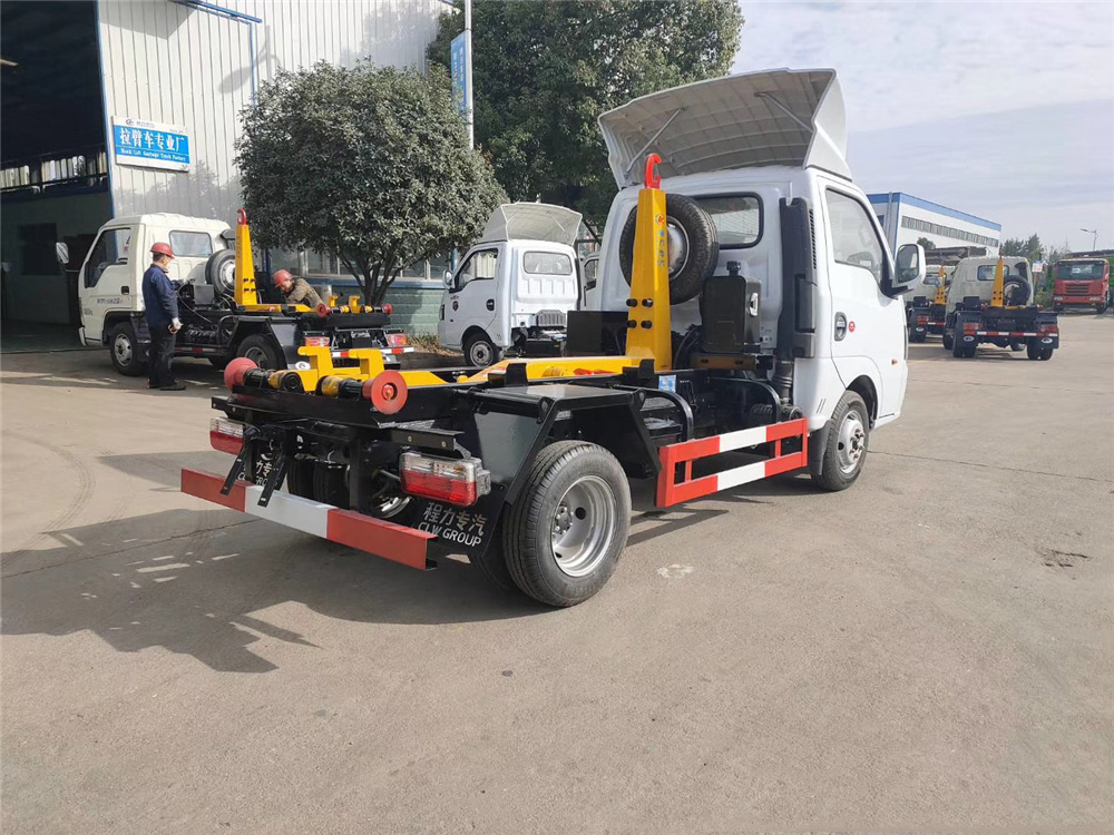 国六东风途逸勾臂垃圾车,匹配垃圾箱容积3-4立方,火车头式驾驶室,内饰配置高端,可选用2600/2800/3000轴距,2.5吨后桥,柳州五菱112马力汽油发动机,5档变速箱,175R14LT真空轮胎(后双胎),方向助力,原装空调,中控,遥控钥匙。